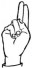 На ћирилици написано ПЕТРА ОКОШАНОВИЋ састоји се из 15 слова [?]. Исписано ћириличном једноручном азбуком за глувонеме: